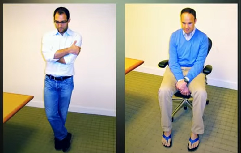 Перед співбесідами люди часто згортаються над телефоном чи записами, роблячи себе «маленькими», але дослідження показало інше: учасників, які на кілька хвилин приймали сильні пози, сприймали як більш позитивних і бажаних кандидатів, навіть за умов стресового інтерв’ю з «беземоційними» суддями. Вирішальним виявилося не зміст їхніх відповідей і не підготовка, а самовідчуття й упевненість, які вони вкладали у свою промову.