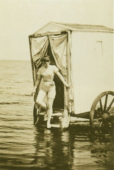 На відміну від нас, люди XVIII-XIX століття не могли просто так зайти у воду на пляжі. Їм доводилося користуватися купальними машинами – спеціальними фургонами, схожими на пляжні будиночки. Фургони завозили у воду, щоб відпочивальники могли поплавати подалі від чужих очей, причому жіночі купальні машини встановлювали в стороні від чоловічих.
