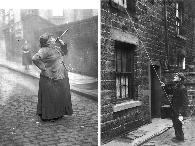 Knocker-up, або людина-будильник, – це професія, яка існувала з кінця XVIII століття до 1920 року. В обов’язки таких людей входило пробудження тих, хто повинен був вирушити на роботу. «Будильники» стукали у вікна своїх клієнтів палицями або стріляли в них горохом з духової трубки. Не зовсім ясно, хто будив самих knocker-up, але є версія, що вони взагалі не лягали спати до роботи.