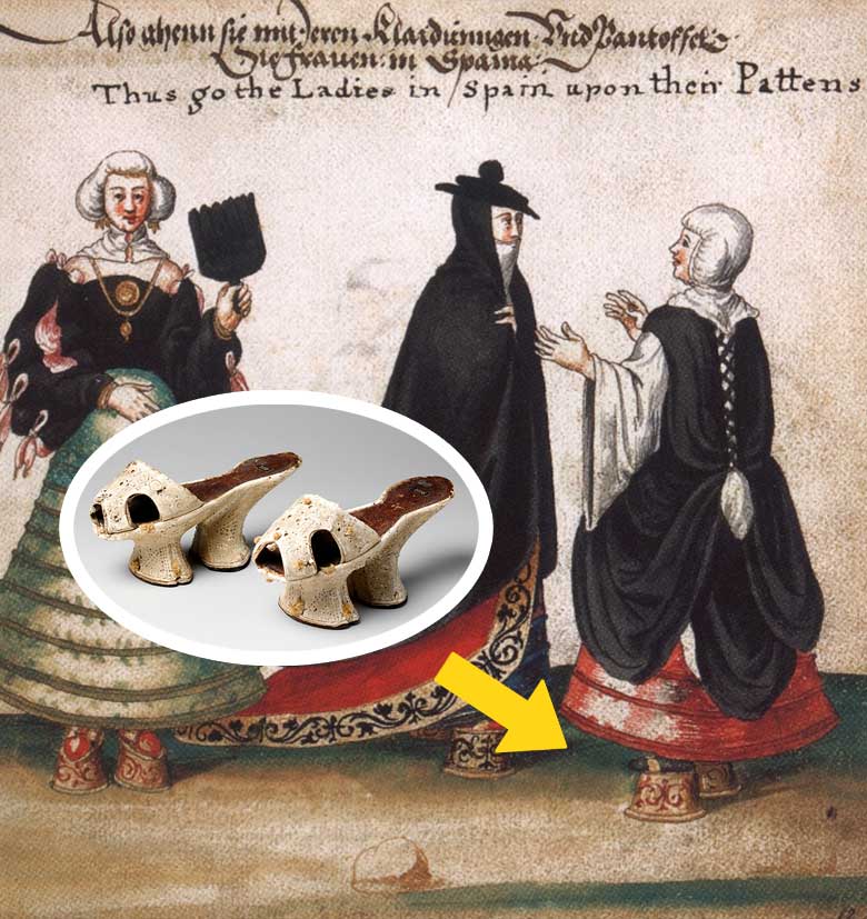 Чопіни, також відомі як цокколі і пьянеллі, – вид взуття на платформі, висота якої могла досягати 50 см. Не дивно, що для носіння цього взуття була потрібна допомога слуг, щоб у буквальному сенсі не стати жертвою моди. Втім, носили чопіни не тільки з прагнення до краси, а ще й для того, щоб не забруднити одяг у вуличному бруді.