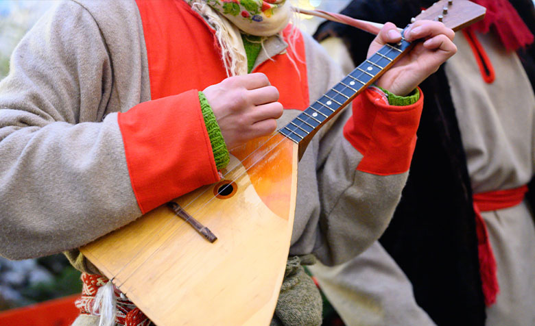 Балалайка — це, мабуть, найвідоміший «російський» струнний інструмент. Вважається, що вона набула поширення в Росії з кінця XVII — початку XVIII століття.