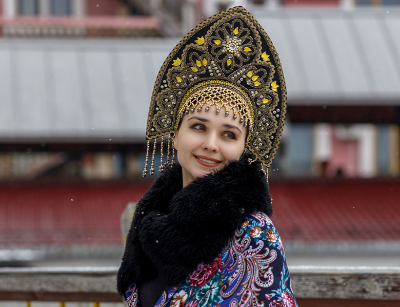 Кокошник давно став символом «російського національного жіночого костюма». Насправді цей головний убір у вигляді гребеня або опахала навколо голови теж не є російським, а має угро-фінське походження. Слово «кокошник» походить від слова «кокош» — так у старі часи в Росії називали курку. Назва убору пов’язана із його схожістю на гребінь цього птаха.