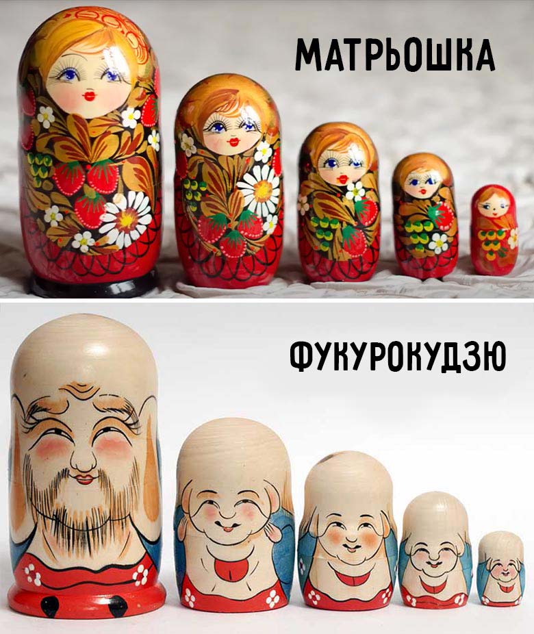 Прототипом для матрьошки послужив японський бог щастя, багатства і достатку — Фукурокудзю, який входить до складу «семи богів щастя». Цих богів у давнину японці зображали на фігурках, які вкладалися одна в одну, як сучасні матрьошки. Фукурокудзю був головною, найбільш роз’ємною фігуркою.