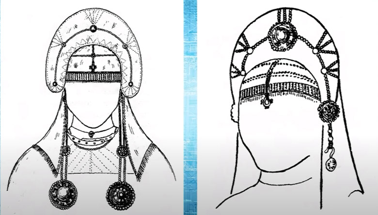 Археологи на території, заселеній давніми фінськими племенами, виявили марійський “кокошник”, який мав лопатоподібну форму і виявився дуже схожим на пізніші кокошники владімірсько-ніжегородського типу. Отож, «російський» кокошник також є запозиченим елементом.