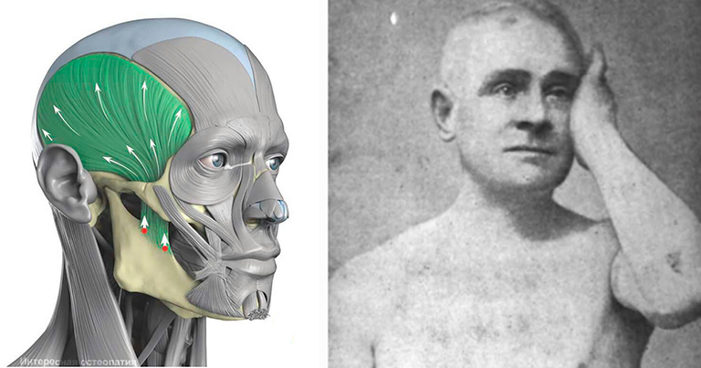 Ставимо долоню так, як зображено на ілюстрації і відчутно проводимо долонею у напрямку м’язів скроні: від щоки по діагоналі вгору, до волосяного покриву біля скронь.